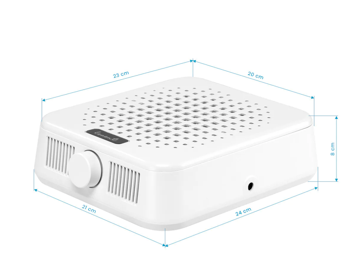 Kynsiporalla työskennellessä syntyy runsaasti pölyä, joka voi pidemmän päälle olla terveydelle haitallista. Siksi kynsistudioon kannattaa valita tehokas pölynimuri, joka puhdistaa ilman ja nostaa hygienian tasoa sekä stylistin että asiakkaan mukavuuden takaamiseksi. Nopea tuuletin imee pölyn tehokkaasti ja ohjaa sen suoraan suodattimiin, jotka sitovat jopa hienoimmatkin hiukkaset.