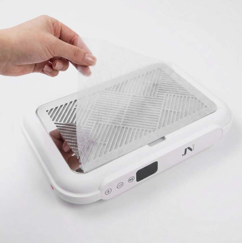 Suodatinliina asetetaan helposti imurin ritilän päälle ja hävitetään käytön jälkeen. Tämä säästää aikaa siivouksessa ja varmistaa korkean hygieniatason kynsistudiossa.